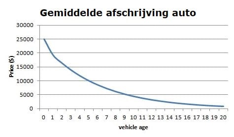 Zoals je hieronder kunt zien, vindt de grootste afschrijving van een zakelijke auto in de eerste twee jaar plaats. In combinatie met de fiscale voordelen, zoals het terugvorderen van de BTW en het fiscaal verrekenen van de rente die financial lease biedt, heb je als ondernemer de beste deal. Bij het leasen van een 2e-hands auto van twee jaar of ouder is prijstechnisch vaak het voordeligst.